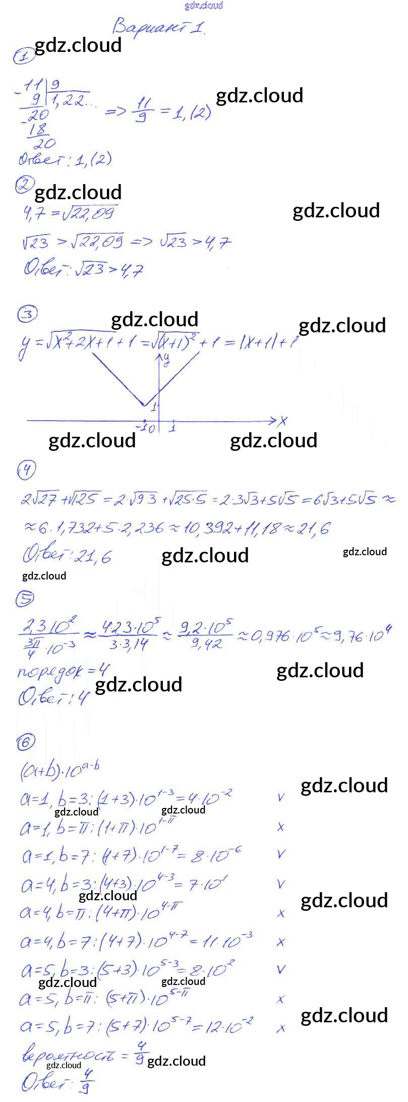 Ответ на задание вариант-1 Дидактические материалы Алгебра за 8 (восьмой) класс Попов УМК 2014