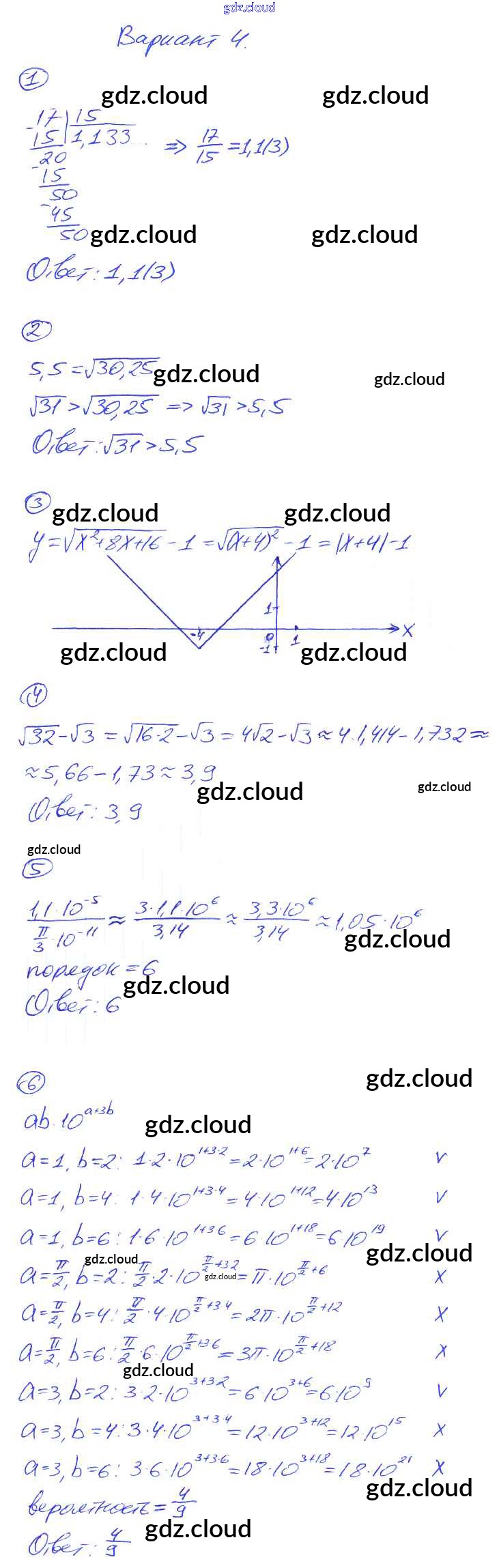 Ответ на задание вариант-4 Дидактические материалы Алгебра за 8 (восьмой) класс Попов УМК 2014