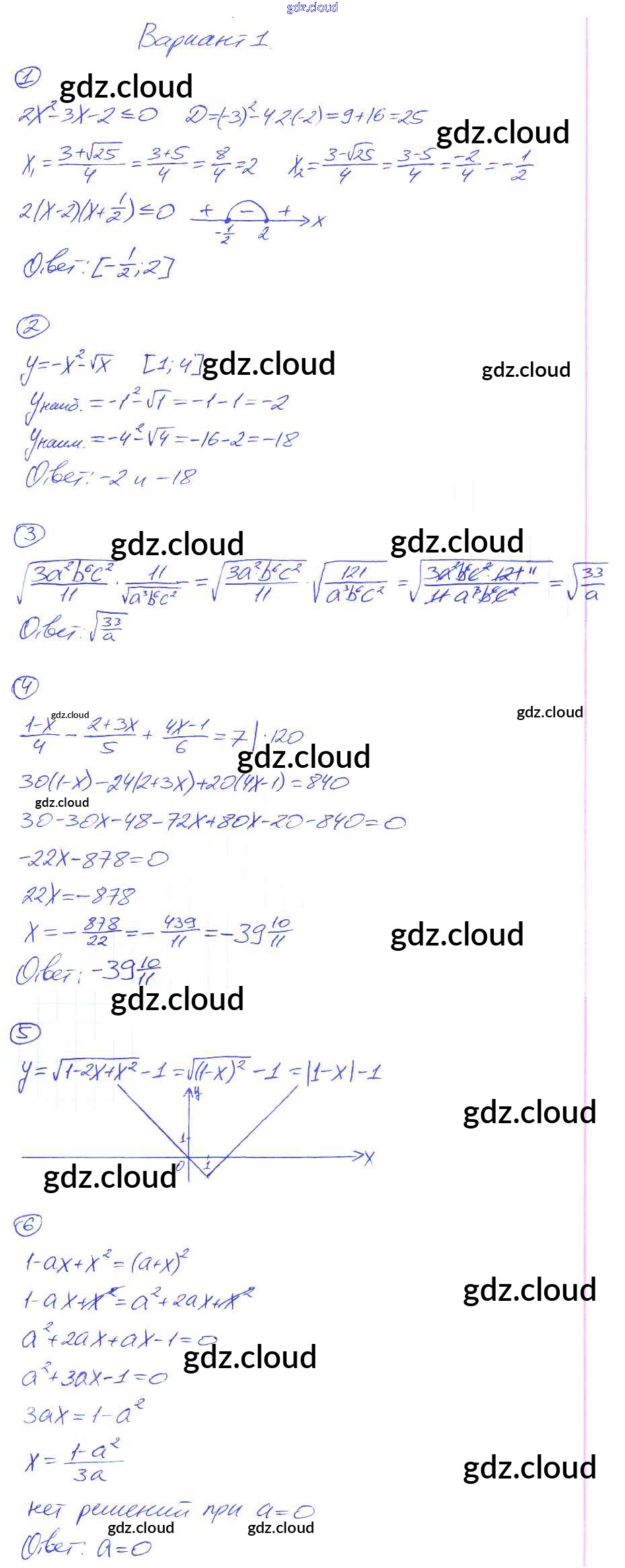 Ответ на задание вариант-1 Дидактические материалы Алгебра за 8 (восьмой) класс Попов УМК 2014