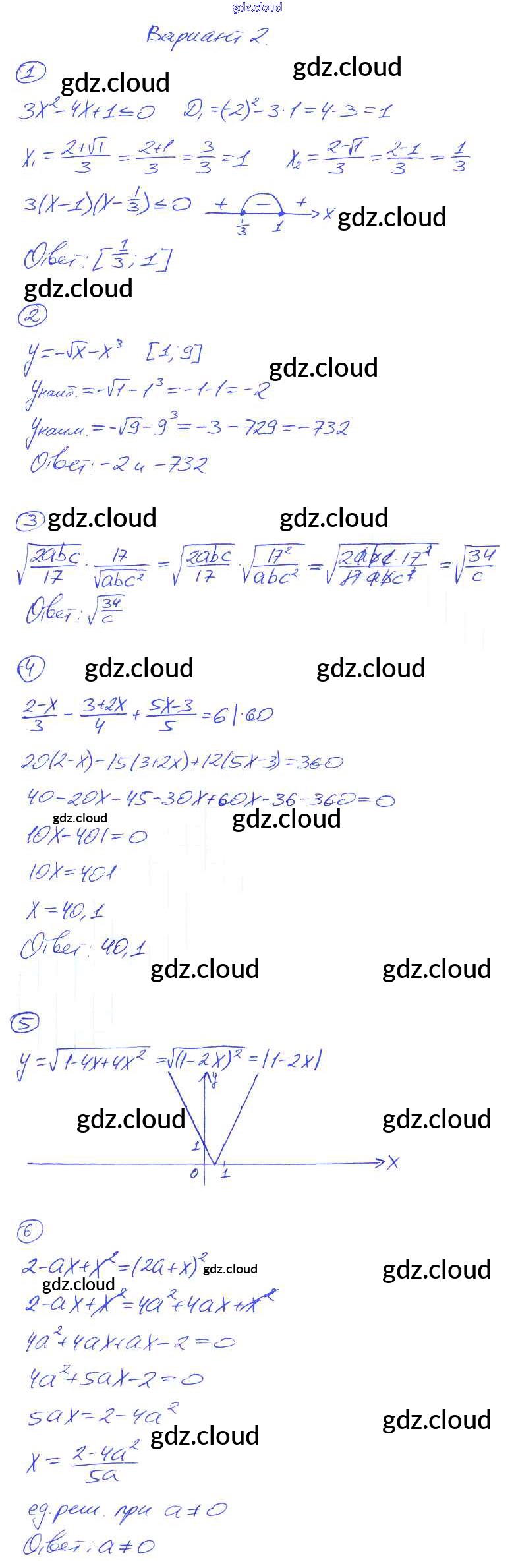 Ответ на задание вариант-2 Дидактические материалы Алгебра за 8 (восьмой) класс Попов УМК 2014