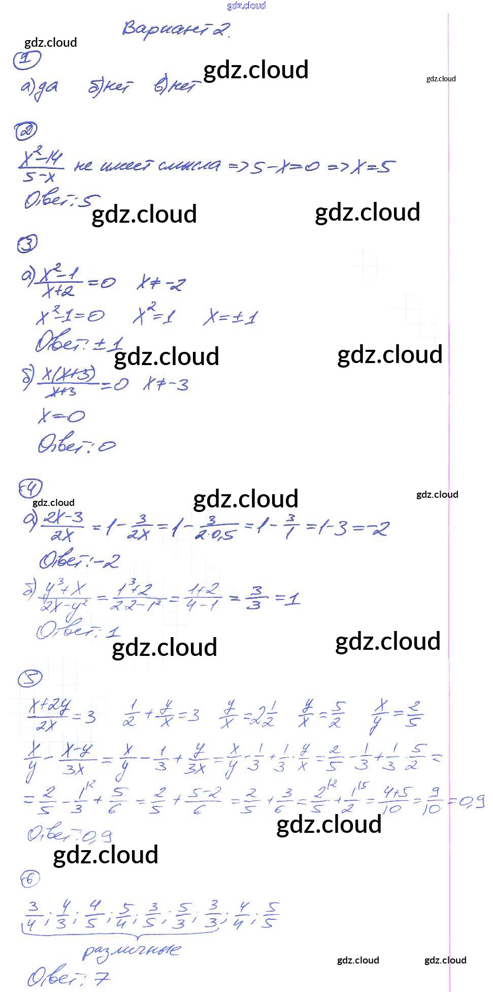 Ответ на задание вариант-2 Дидактические материалы Алгебра за 8 (восьмой) класс Попов УМК 2014