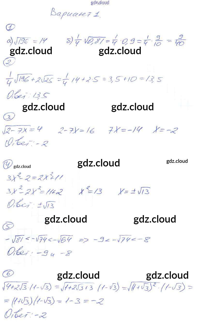 СР-10. Понятие квадратного корня из неотрицательного числа Ответы к Самостоятельным работам по Алгебре 8 класс Дидактические материалы Попов УМК Экзамен