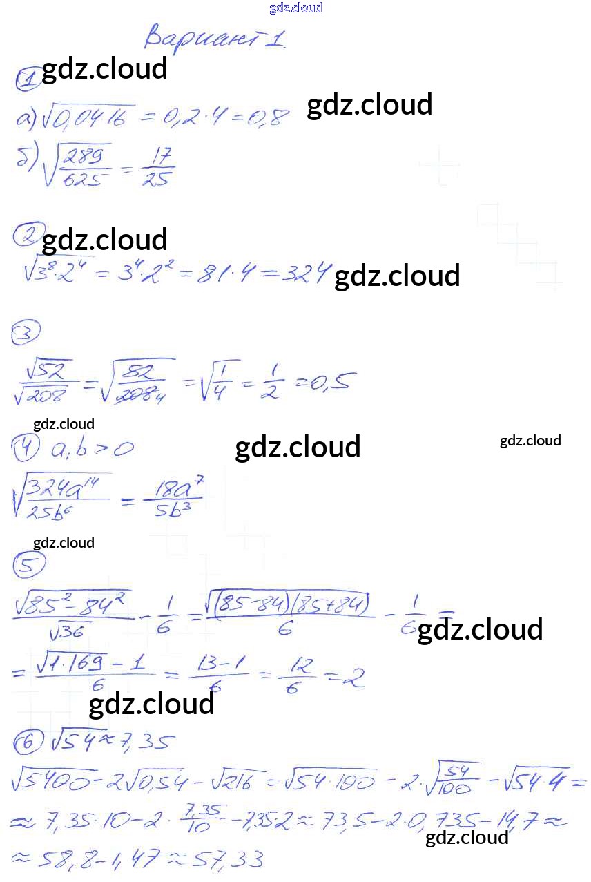 Ответ на задание вариант-1 Дидактические материалы Алгебра за 8 (восьмой) класс Попов УМК 2014