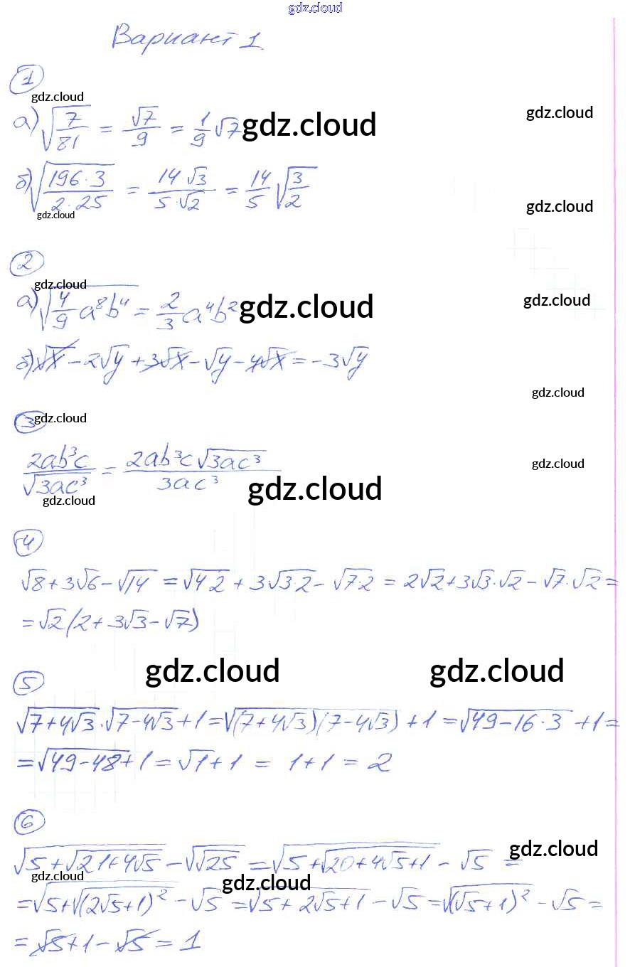 СР-15. Преобразование выражений, содержащих операцию извлечения квадратного корня Ответы к Самостоятельным работам по Алгебре 8 класс Дидактические материалы Попов УМК Экзамен