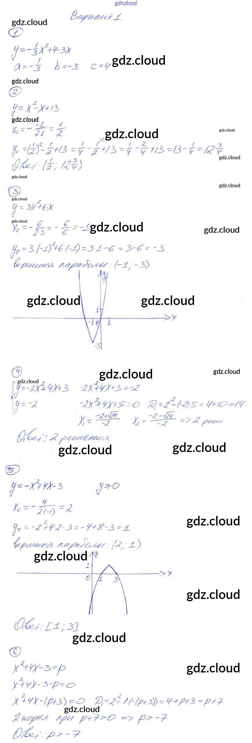 СР-22. Функция y = ax² + bx + c, её свойства и график Ответы к Самостоятельным работам по Алгебре 8 класс Дидактические материалы Попов УМК Экзамен