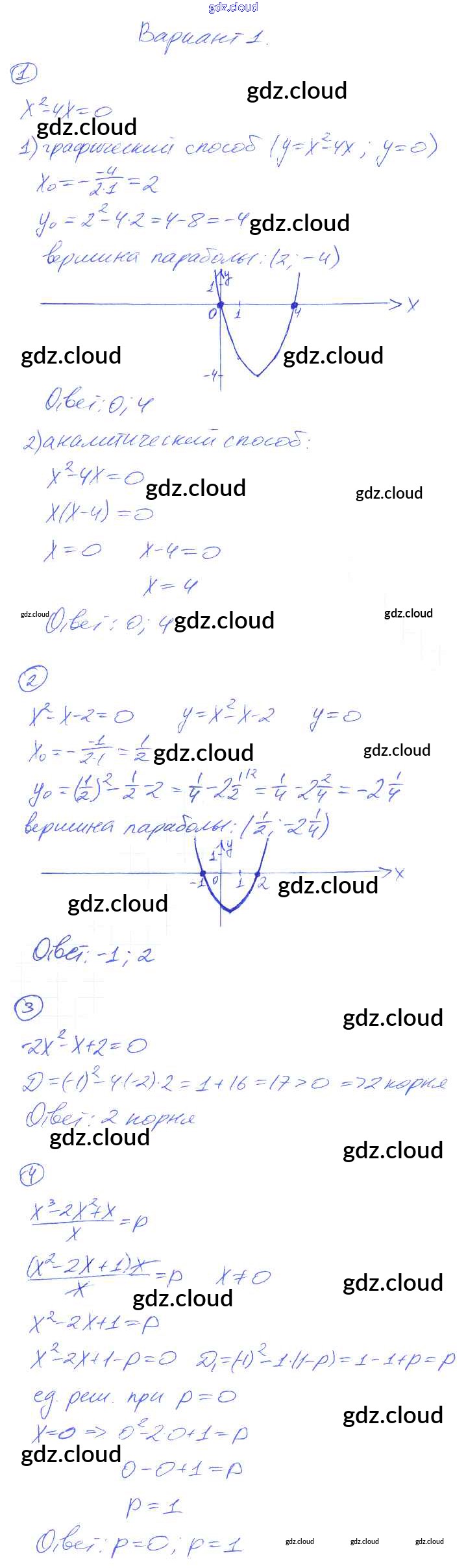 СР-23. Графическое решение квадратных уравнений Ответы к Самостоятельным работам по Алгебре 8 класс Дидактические материалы Попов УМК Экзамен