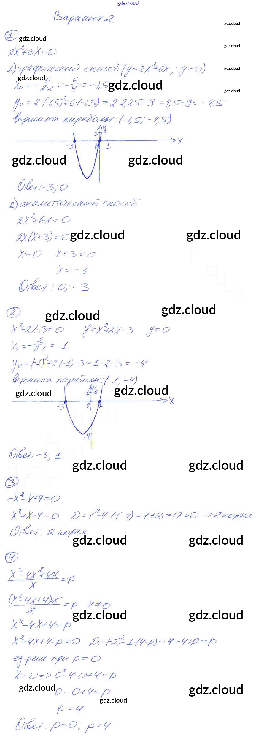 СР-23. Графическое решение квадратных уравнений Ответы к Самостоятельным работам по Алгебре 8 класс Дидактические материалы Попов УМК Экзамен