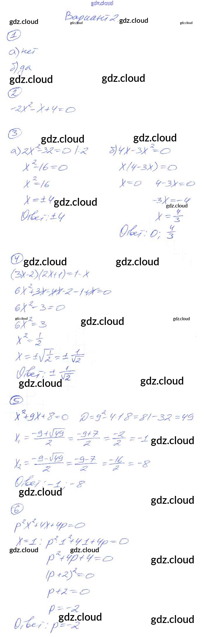 Ответ на задание вариант-2 Дидактические материалы Алгебра за 8 (восьмой) класс Попов УМК 2014