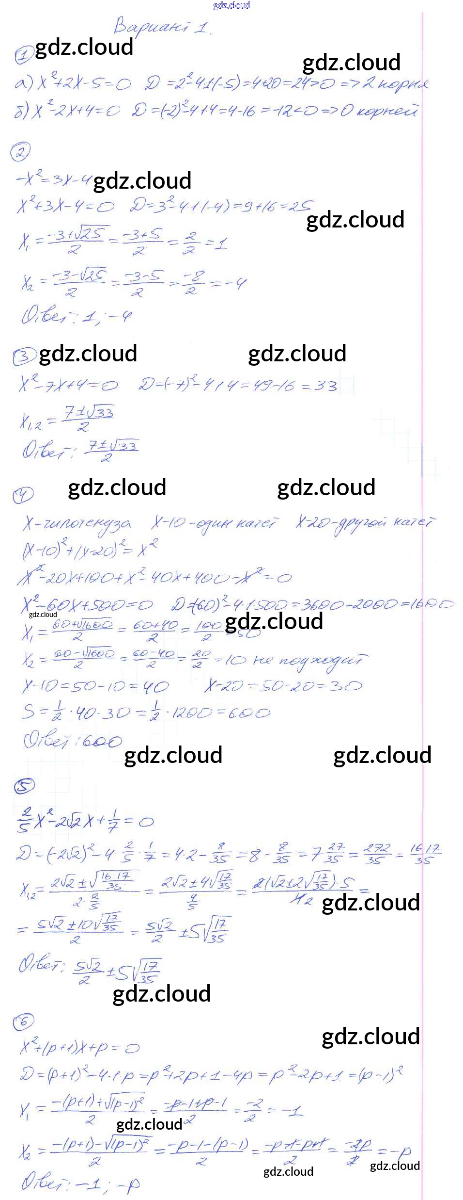 СР-25. Формулы корней квадратных уравнений Ответы к Самостоятельным работам по Алгебре 8 класс Дидактические материалы Попов УМК Экзамен