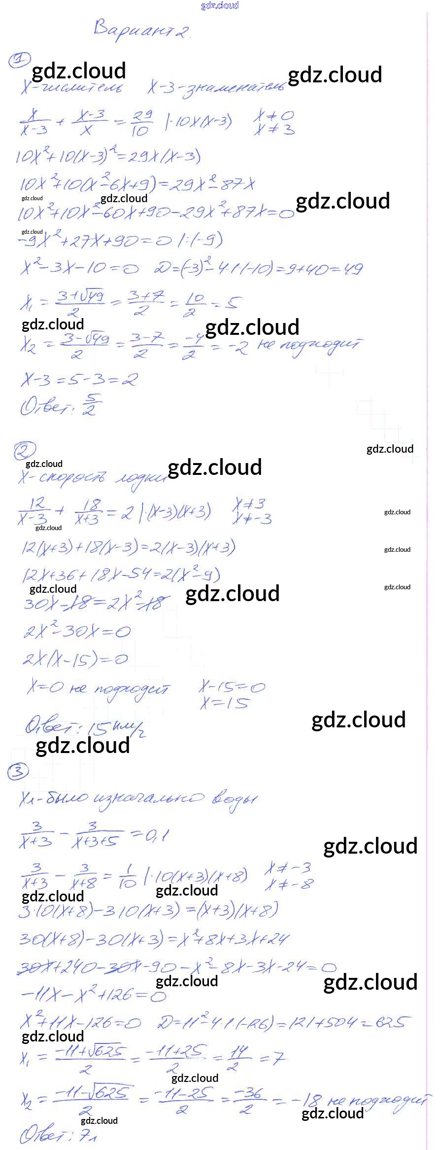 СР-27. Рациональные уравнения как математические модели реальных ситуаций Ответы к Самостоятельным работам по Алгебре 8 класс Дидактические материалы Попов УМК Экзамен