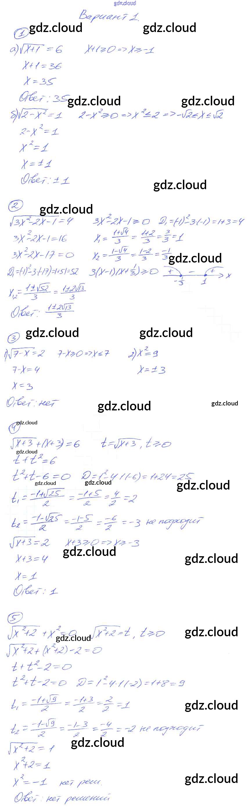 СР-30. Иррациональные уравнения Ответы к Самостоятельным работам по Алгебре 8 класс Дидактические материалы Попов УМК Экзамен