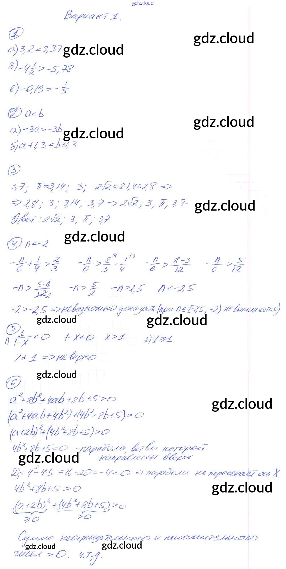 Ответ на задание вариант-1 Дидактические материалы Алгебра за 8 (восьмой) класс Попов УМК 2014