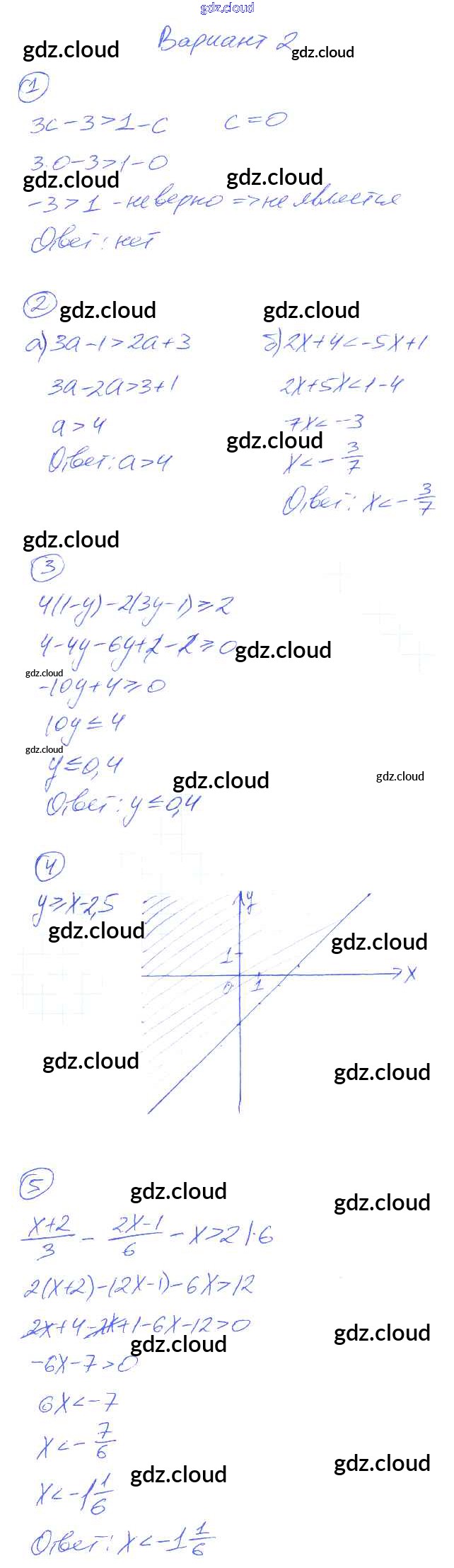 СР-33. Решение линейных неравенств Ответы к Самостоятельным работам по Алгебре 8 класс Дидактические материалы Попов УМК Экзамен