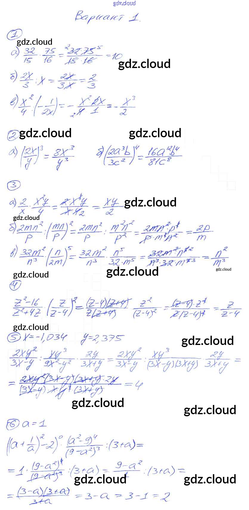 Ответ на задание вариант-1 Дидактические материалы Алгебра за 8 (восьмой) класс Попов УМК 2014