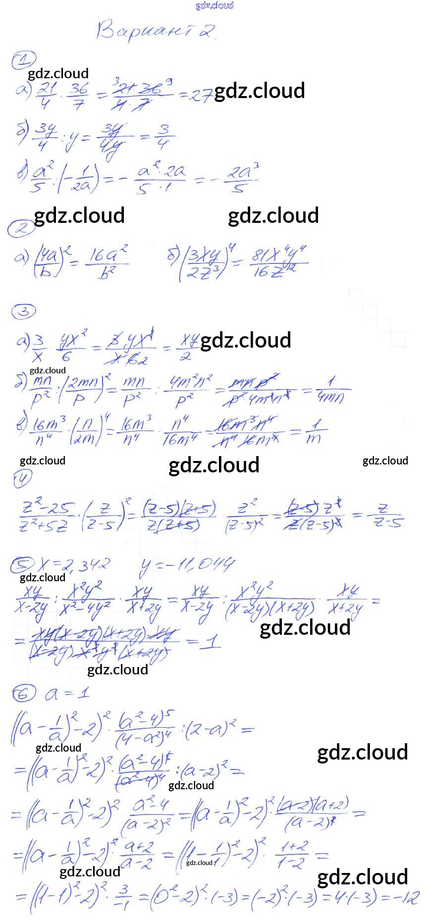 СР-5. Умножение и деление алгебраических дробей. Возведение алгебраической дроби в степень Ответы к Самостоятельным работам по Алгебре 8 класс Дидактические материалы Попов УМК Экзамен