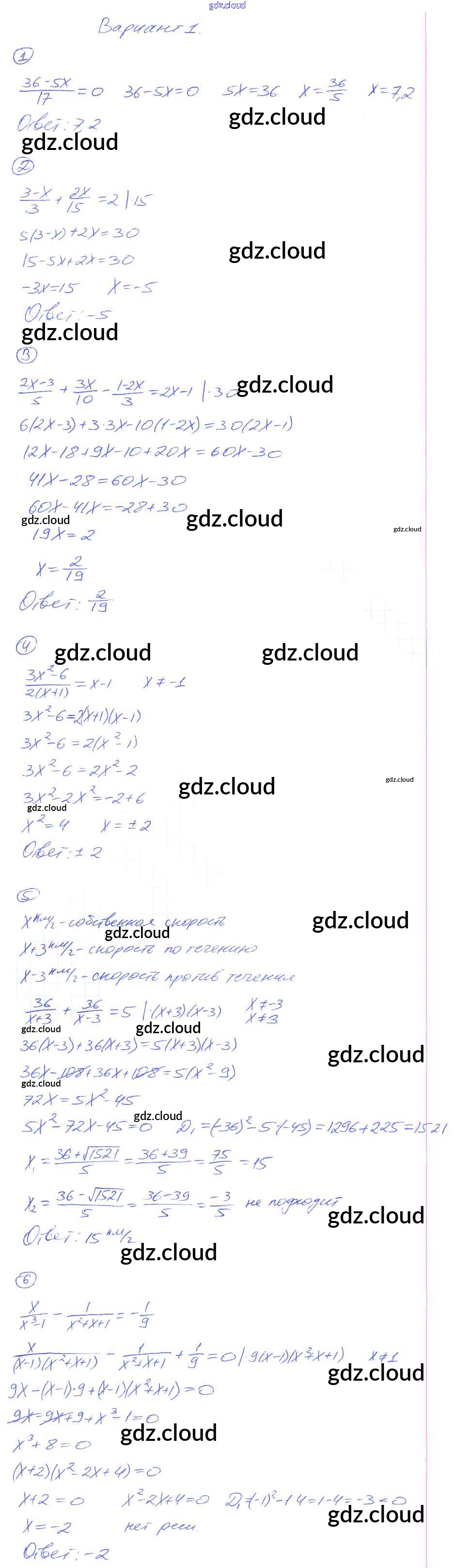 СР-7. Первые представления о рациональных уравнениях Ответы к Самостоятельным работам по Алгебре 8 класс Дидактические материалы Попов УМК Экзамен