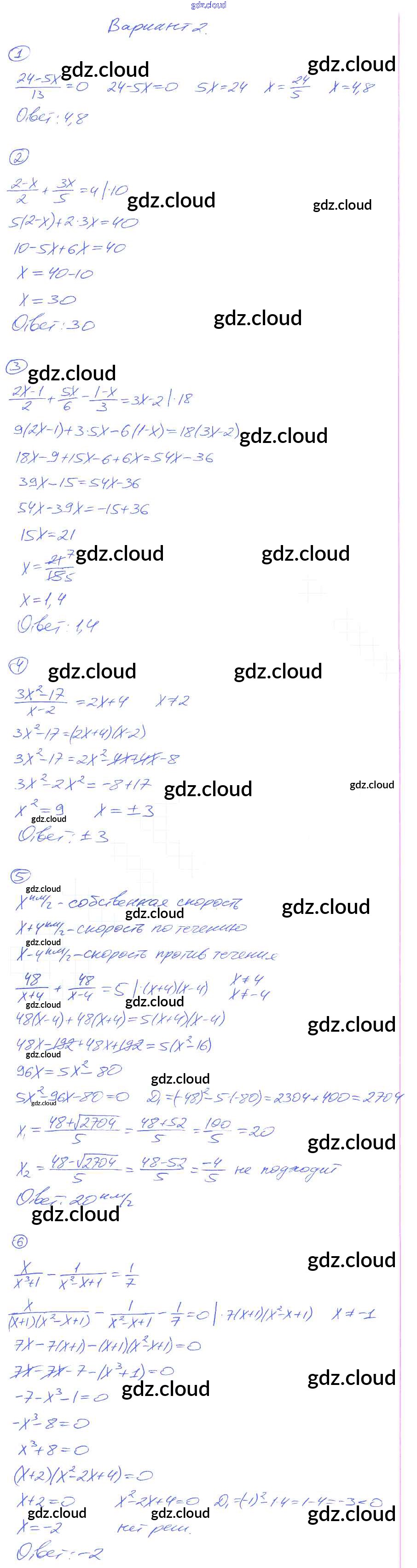 СР-7. Первые представления о рациональных уравнениях Ответы к Самостоятельным работам по Алгебре 8 класс Дидактические материалы Попов УМК Экзамен