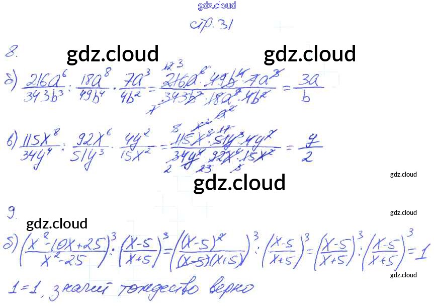 Ответ на задание стр.31 Рабочая тетрадь Алгебра за 8 (восьмой) класс Ключникова, Комиссарова УМК 2013 Часть 1