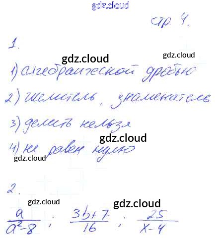 Ответ на задание стр.4 Рабочая тетрадь Алгебра за 8 (восьмой) класс Ключникова, Комиссарова УМК 2013 Часть 1 ФГОС онлайн и без номера телефона.
