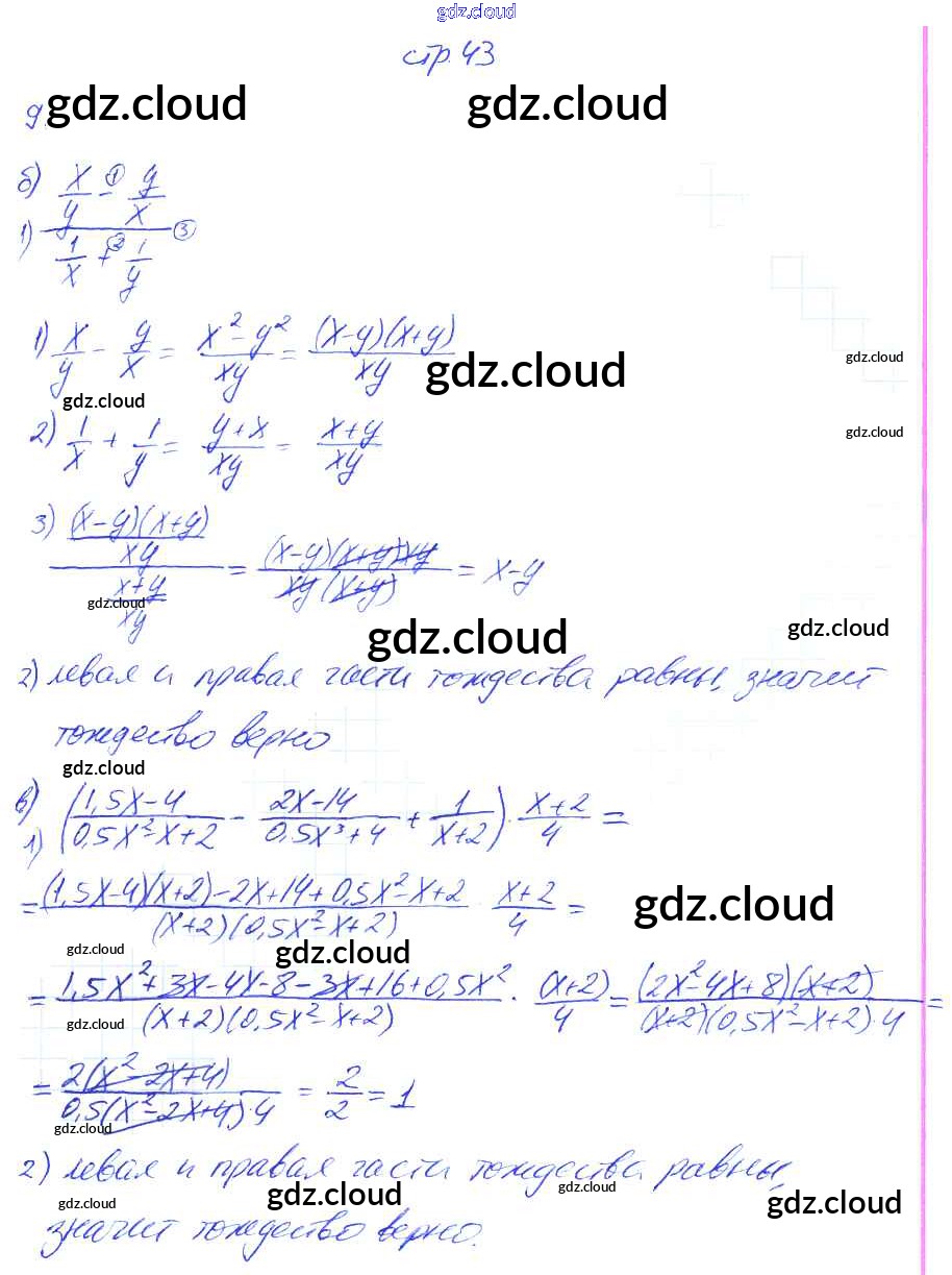 Ответ на задание стр.43 Рабочая тетрадь Алгебра за 8 (восьмой) класс Ключникова, Комиссарова УМК 2013 Часть 1