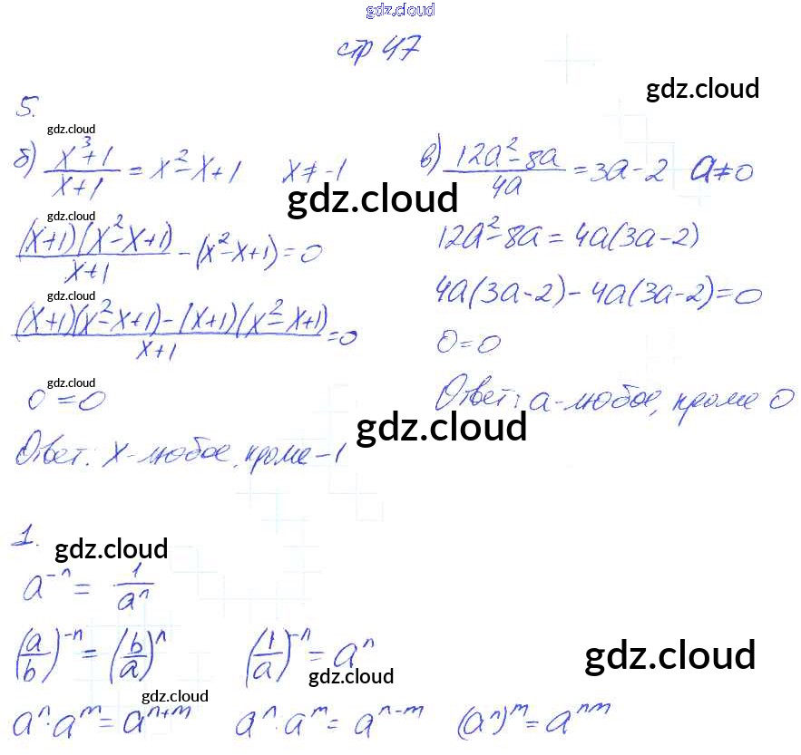 Ответ на задание стр.47 Рабочая тетрадь Алгебра за 8 (восьмой) класс Ключникова, Комиссарова УМК 2013 Часть 1