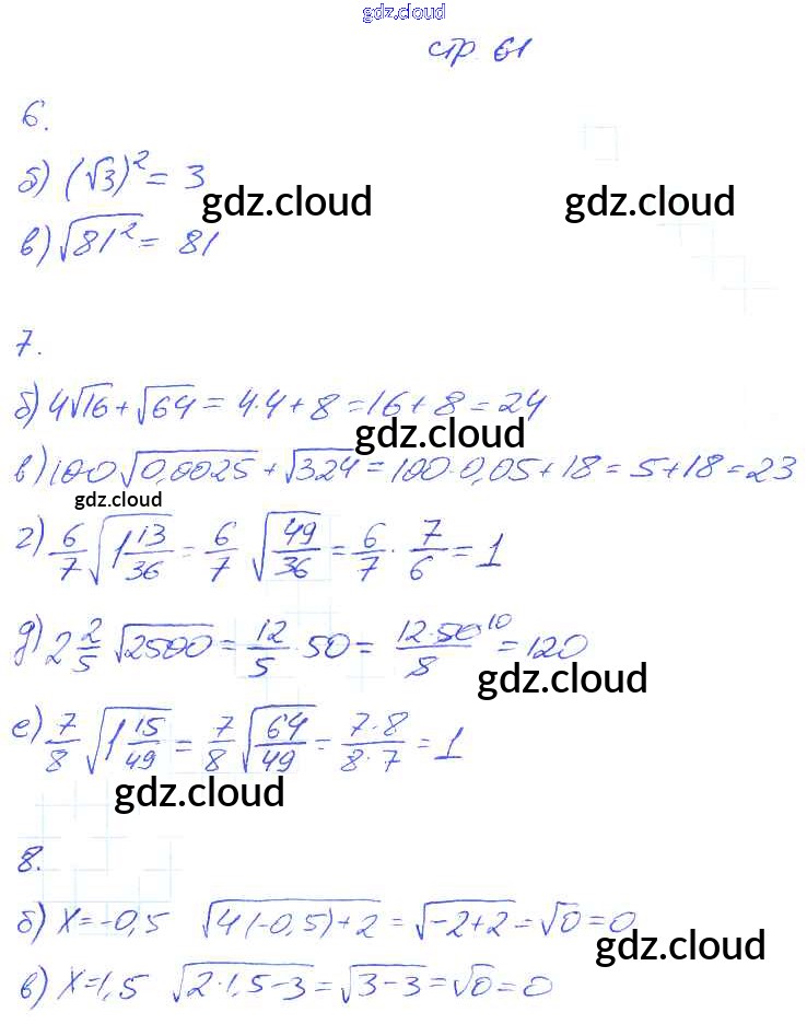 Ответ на задание стр.61 Рабочая тетрадь Алгебра за 8 (восьмой) класс Ключникова, Комиссарова УМК 2013 Часть 1
