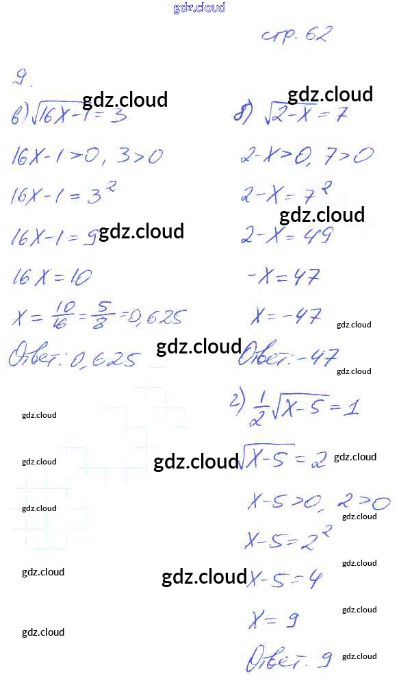 Ответ на задание стр.62 Рабочая тетрадь Алгебра за 8 (восьмой) класс Ключникова, Комиссарова УМК 2013 Часть 1