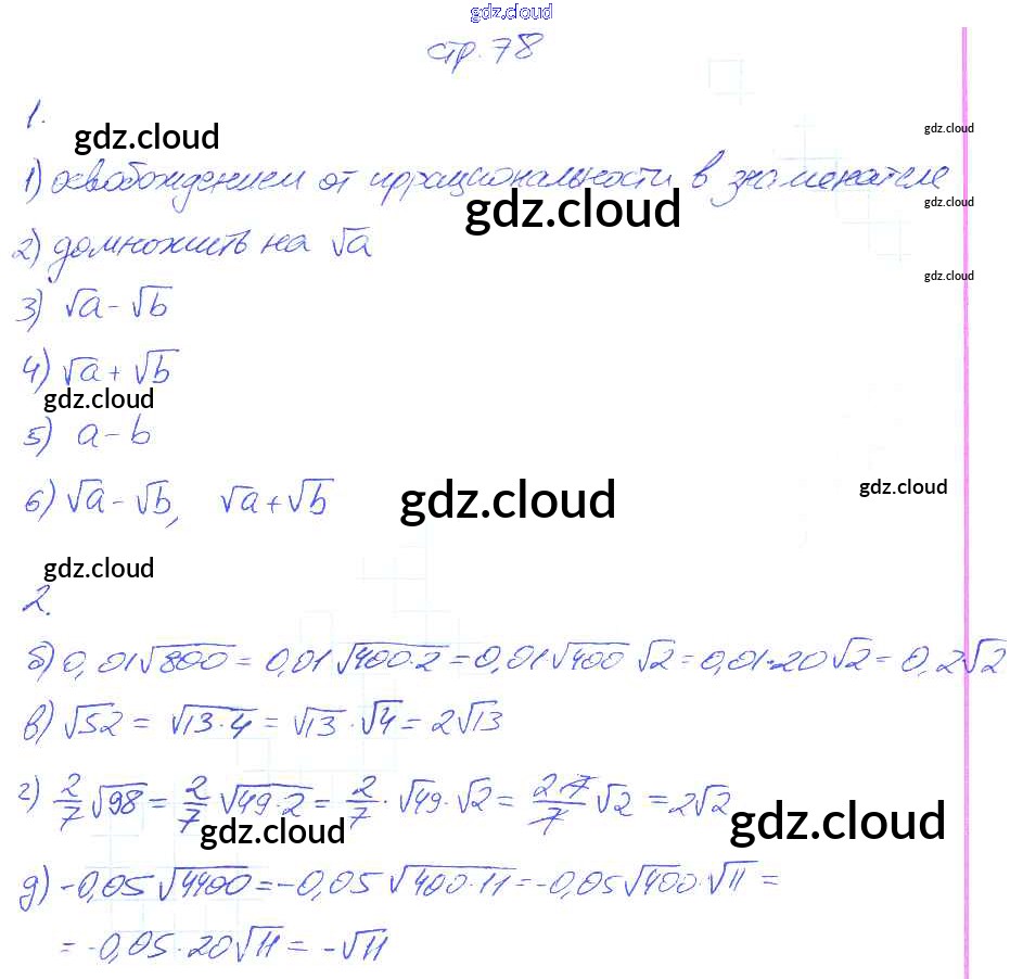 Ответ на задание стр.78 Рабочая тетрадь Алгебра за 8 (восьмой) класс Ключникова, Комиссарова УМК 2013 Часть 1