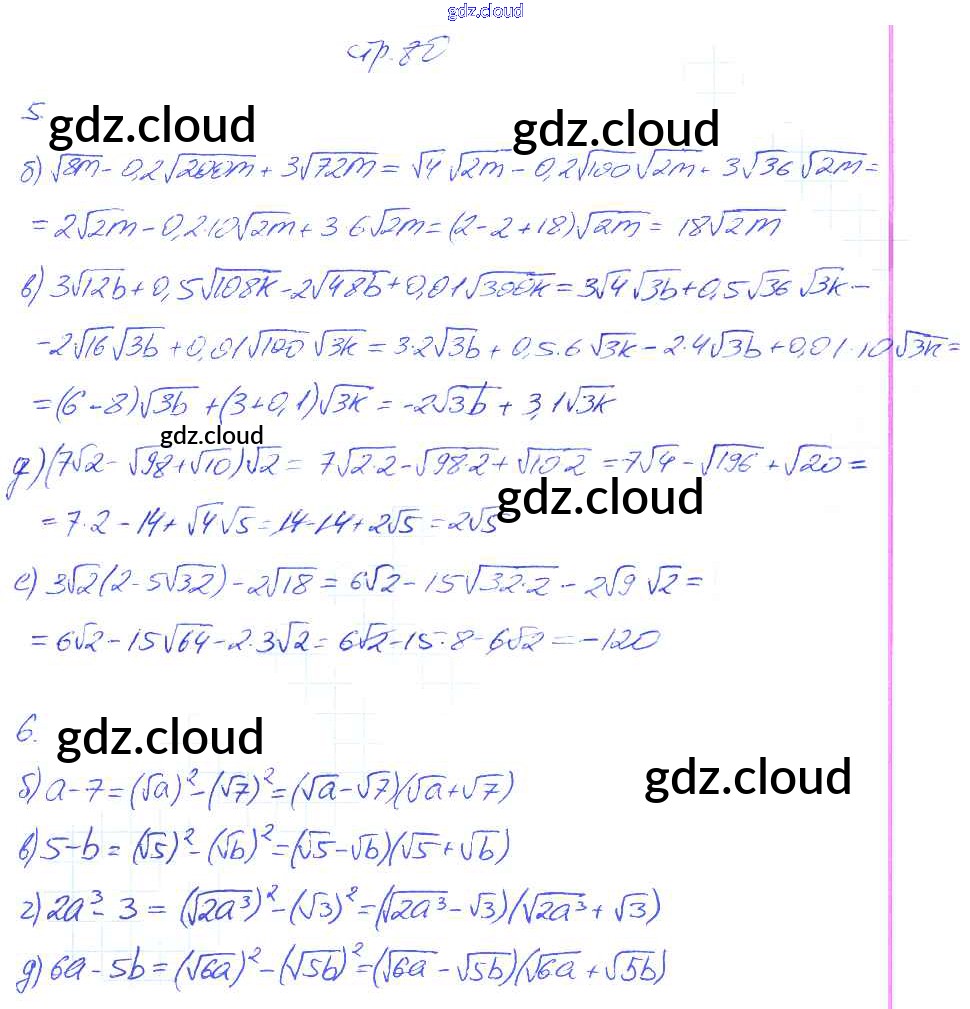 Ответ на задание стр.80 Рабочая тетрадь Алгебра за 8 (восьмой) класс Ключникова, Комиссарова УМК 2013 Часть 1