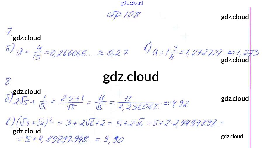 Ответ на задание стр.108 Рабочая тетрадь Алгебра за 8 (восьмой) класс Ключникова, Комиссарова УМК 2013 Часть 1