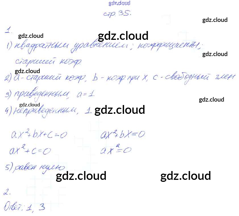 Ответ на задание стр.35 Рабочая тетрадь Алгебра за 8 (восьмой) класс Ключникова, Комиссарова УМК 2013 Часть 1