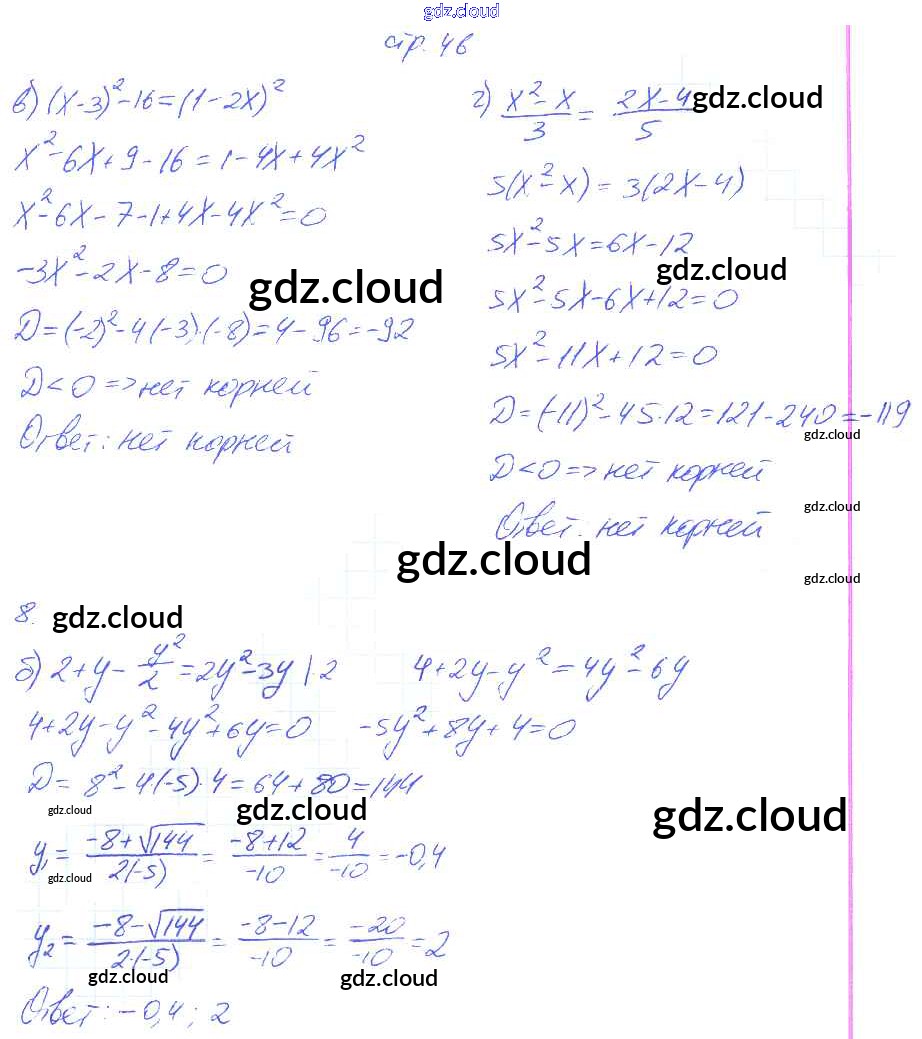 Ответ на задание стр.46 Рабочая тетрадь Алгебра за 8 (восьмой) класс Ключникова, Комиссарова УМК 2013 Часть 1