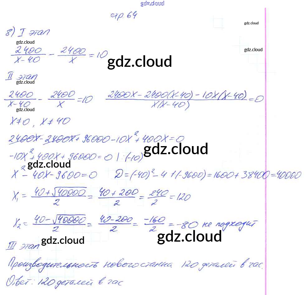 Ответ на задание стр.64 Рабочая тетрадь Алгебра за 8 (восьмой) класс Ключникова, Комиссарова УМК 2013 Часть 1