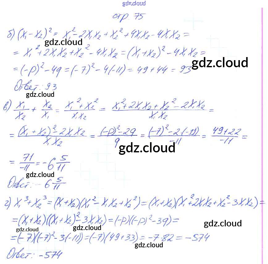 Ответ на задание стр.75 Рабочая тетрадь Алгебра за 8 (восьмой) класс Ключникова, Комиссарова УМК 2013 Часть 1