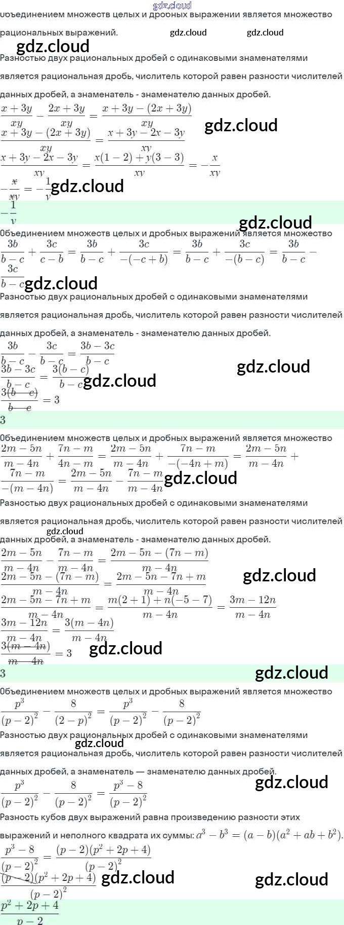 Ответы. §3. Сложение и вычитание рациональных дробей с одинаковыми знаменателями по Алгебре 8 класс Рабочая тетрадь Мерзляк Алгоритм успеха Часть 1, 2 Вентана-граф