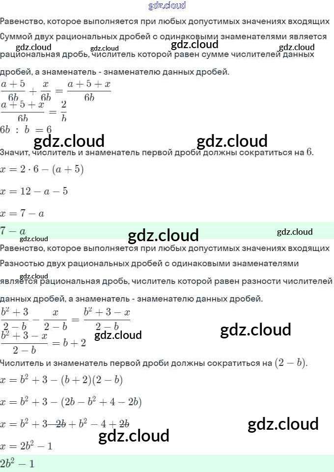 Ответы. §3. Сложение и вычитание рациональных дробей с одинаковыми знаменателями по Алгебре 8 класс Рабочая тетрадь Мерзляк Алгоритм успеха Часть 1, 2 Вентана-граф