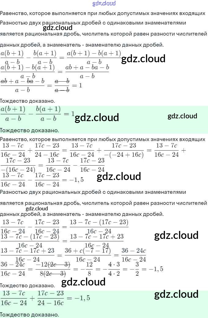 Ответы. §3. Сложение и вычитание рациональных дробей с одинаковыми знаменателями по Алгебре 8 класс Рабочая тетрадь Мерзляк Алгоритм успеха Часть 1, 2 Вентана-граф