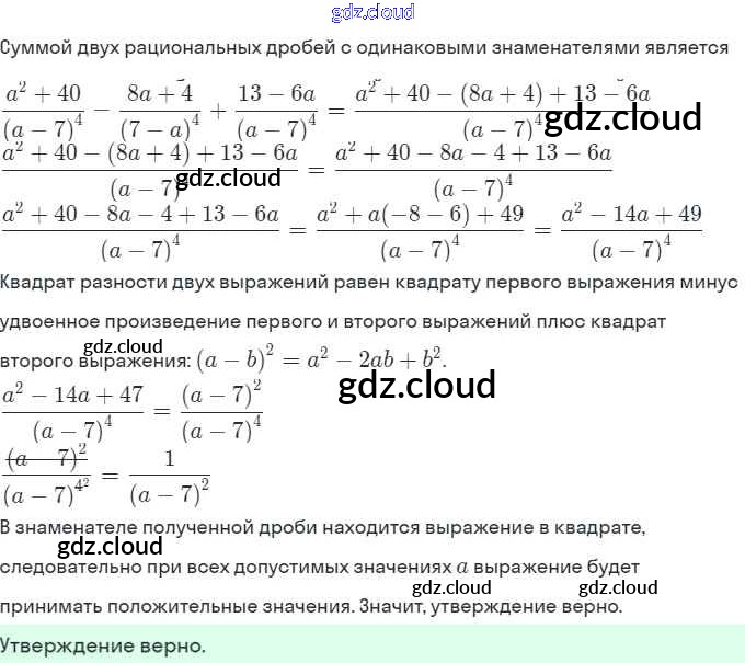 Ответы. §3. Сложение и вычитание рациональных дробей с одинаковыми знаменателями по Алгебре 8 класс Рабочая тетрадь Мерзляк Алгоритм успеха Часть 1, 2 Вентана-граф