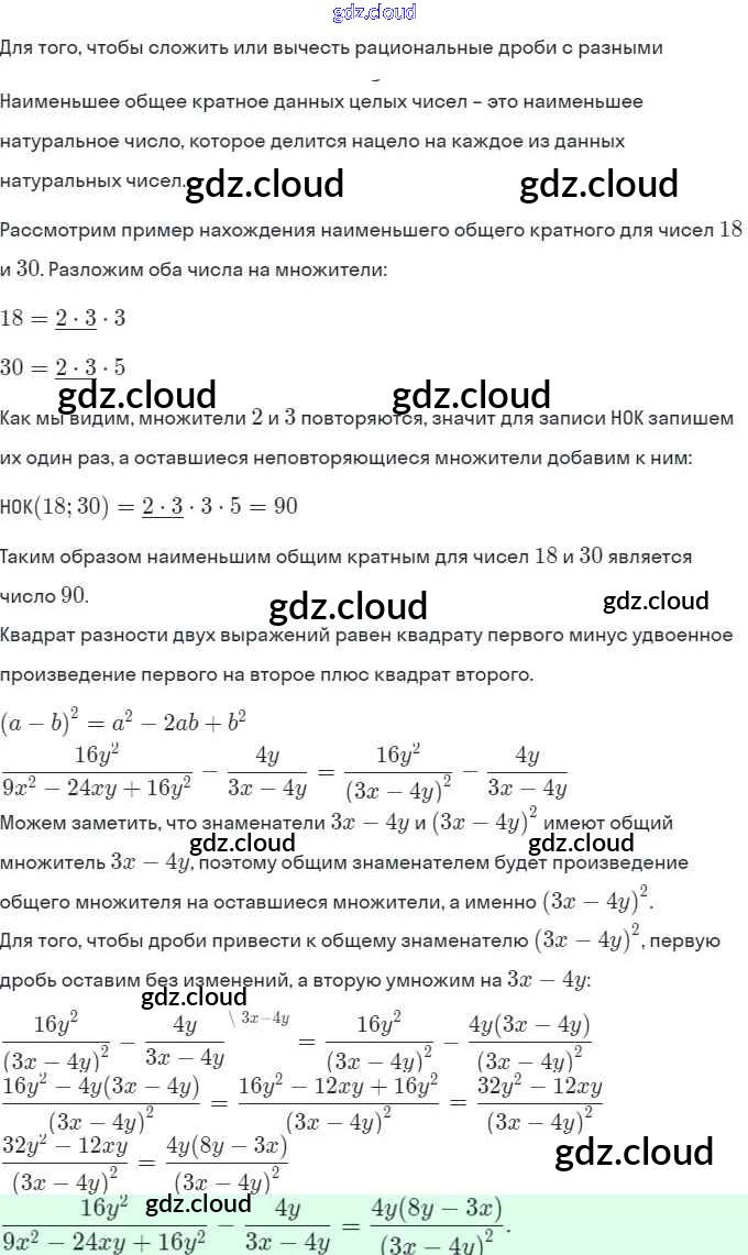 Ответы. §4. Сложение и вычитание рациональных дробей с разными знаменателями по Алгебре 8 класс Рабочая тетрадь Мерзляк Алгоритм успеха Часть 1, 2 Вентана-граф