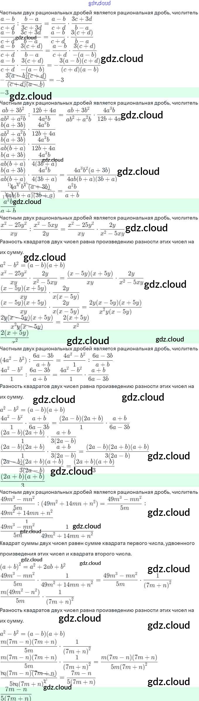Ответы. §5. Умножение и деление рациональных дробей. Возведение рациональной дроби в степень по Алгебре 8 класс Рабочая тетрадь Мерзляк Алгоритм успеха Часть 1, 2 Вентана-граф