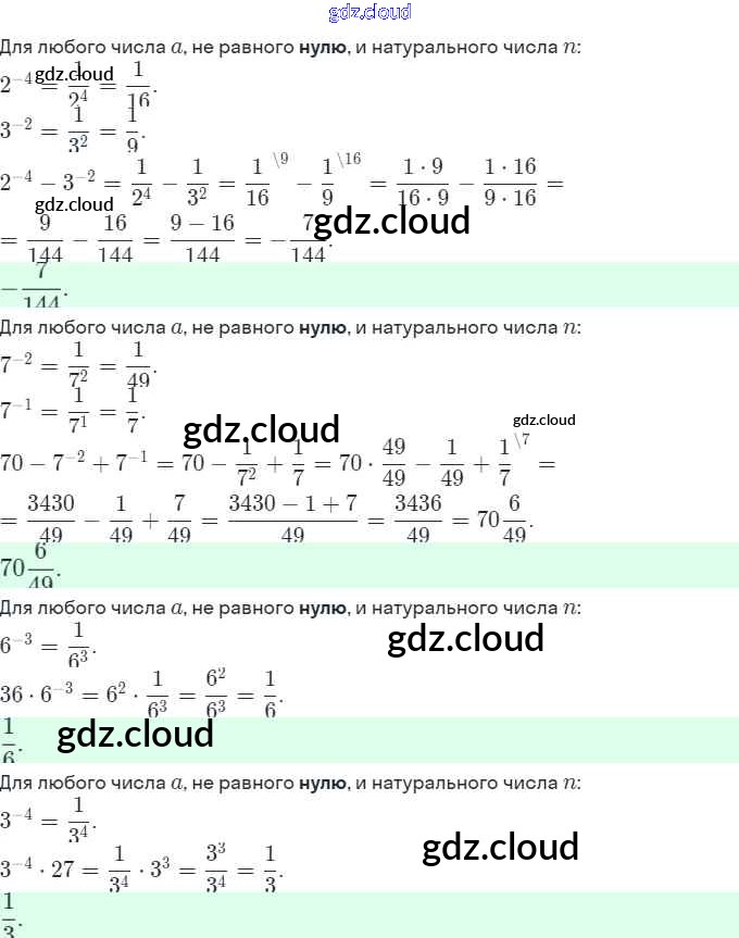 Ответы. §8. Степень с целым отрицательным показателем по Алгебре 8 класс Рабочая тетрадь Мерзляк Алгоритм успеха Часть 1, 2 Вентана-граф