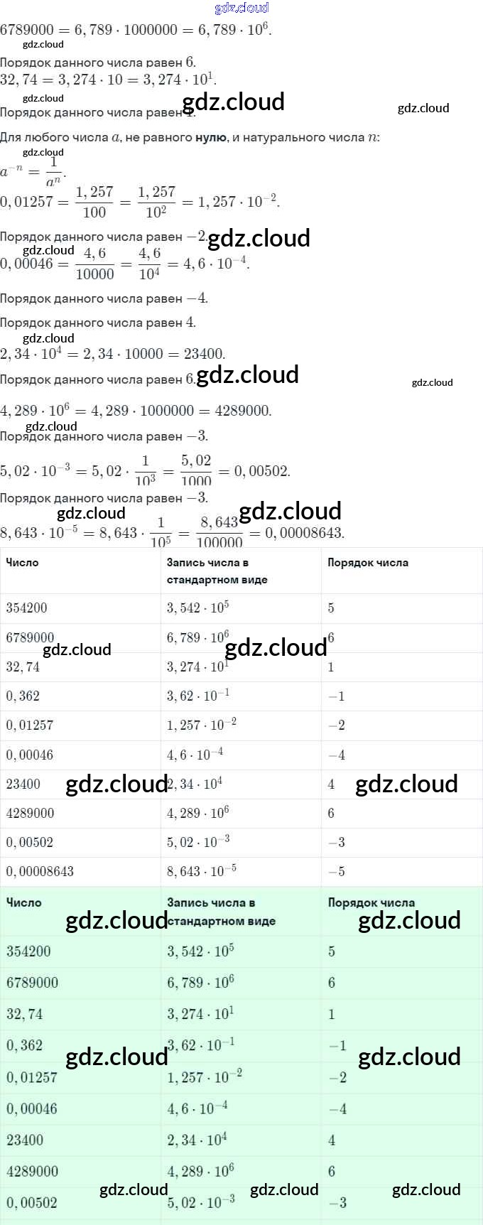 Ответы. §8. Степень с целым отрицательным показателем по Алгебре 8 класс Рабочая тетрадь Мерзляк Алгоритм успеха Часть 1, 2 Вентана-граф