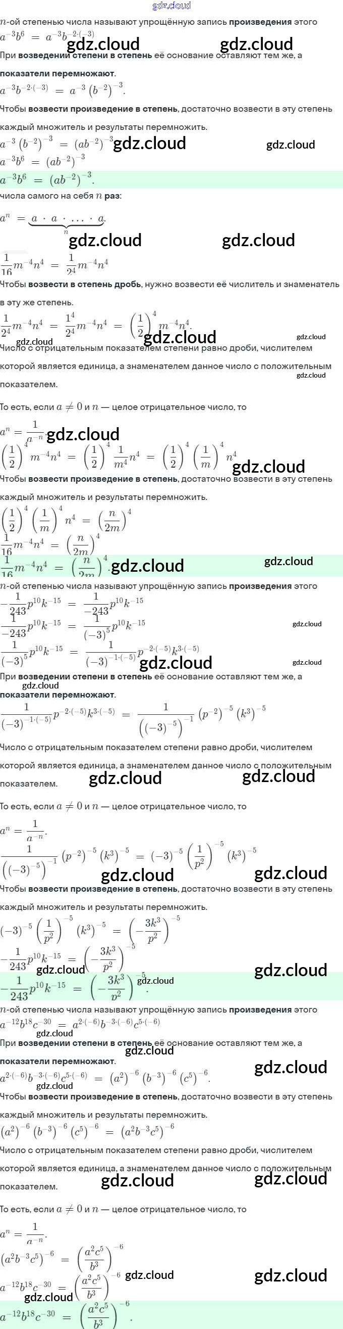 Ответы. §9. Свойства степени с целым показателем по Алгебре 8 класс Рабочая тетрадь Мерзляк Алгоритм успеха Часть 1, 2 Вентана-граф