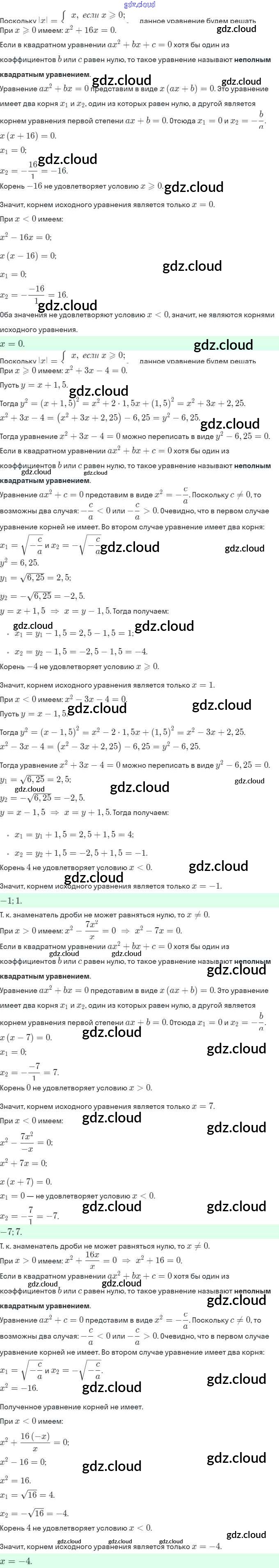 Ответы. §19. Квадратные уравнения. Решение неполных квадратных уравнений по Алгебре 8 класс Рабочая тетрадь Мерзляк Алгоритм успеха Часть 1, 2 Вентана-граф