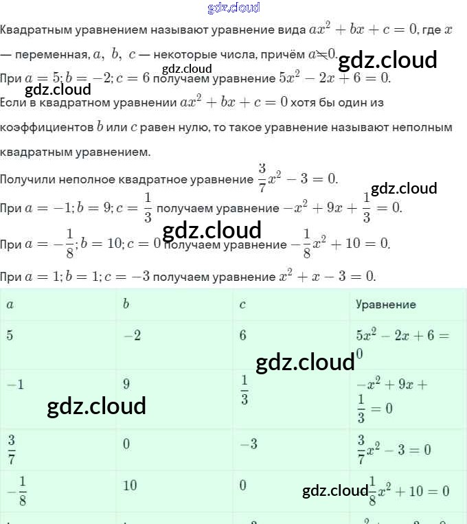 Ответы. §19. Квадратные уравнения. Решение неполных квадратных уравнений по Алгебре 8 класс Рабочая тетрадь Мерзляк Алгоритм успеха Часть 1, 2 Вентана-граф