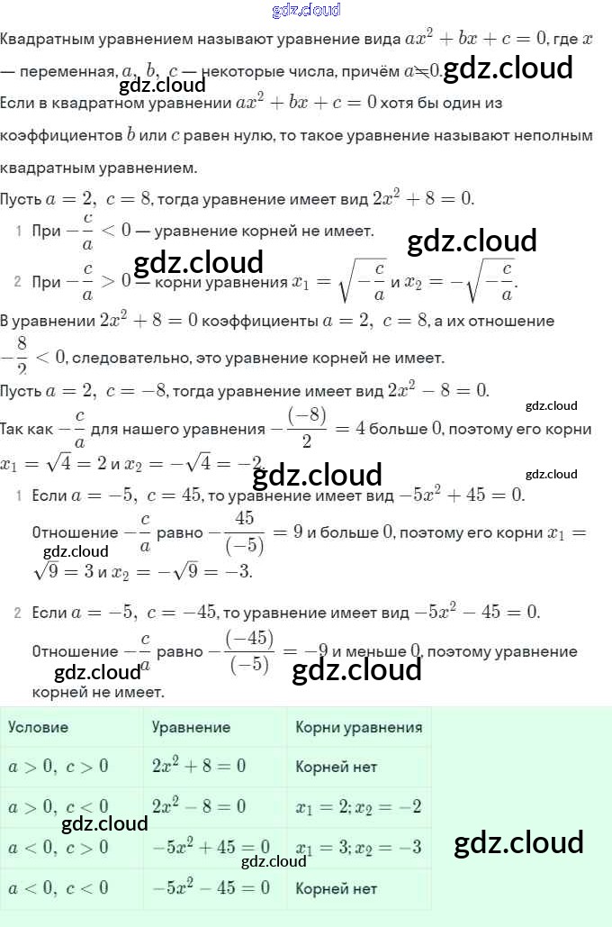 Ответы. §19. Квадратные уравнения. Решение неполных квадратных уравнений по Алгебре 8 класс Рабочая тетрадь Мерзляк Алгоритм успеха Часть 1, 2 Вентана-граф