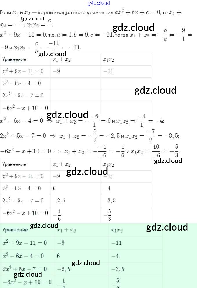 Ответы. §21. Теорема Виета по Алгебре 8 класс Рабочая тетрадь Мерзляк Алгоритм успеха Часть 1, 2 Вентана-граф