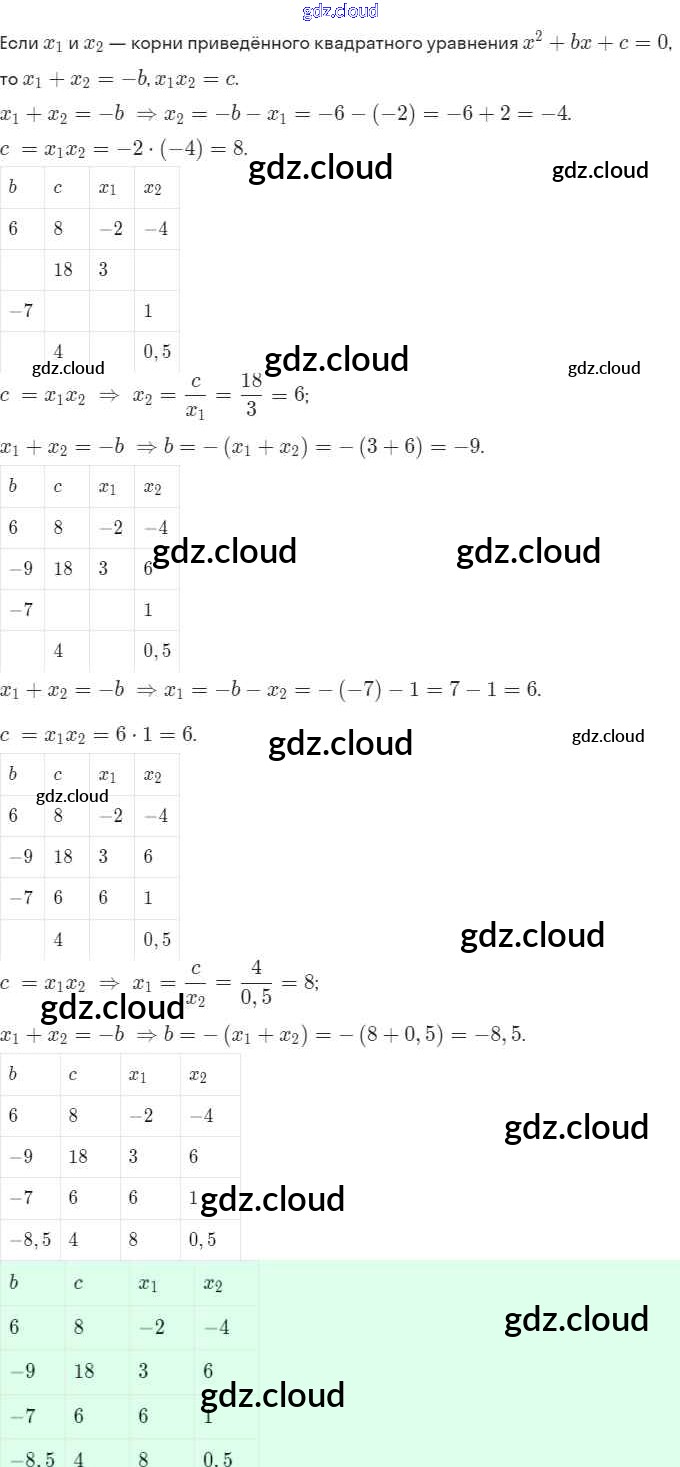 Ответы. §21. Теорема Виета по Алгебре 8 класс Рабочая тетрадь Мерзляк Алгоритм успеха Часть 1, 2 Вентана-граф