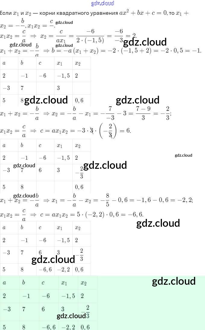 Ответы. §21. Теорема Виета по Алгебре 8 класс Рабочая тетрадь Мерзляк Алгоритм успеха Часть 1, 2 Вентана-граф