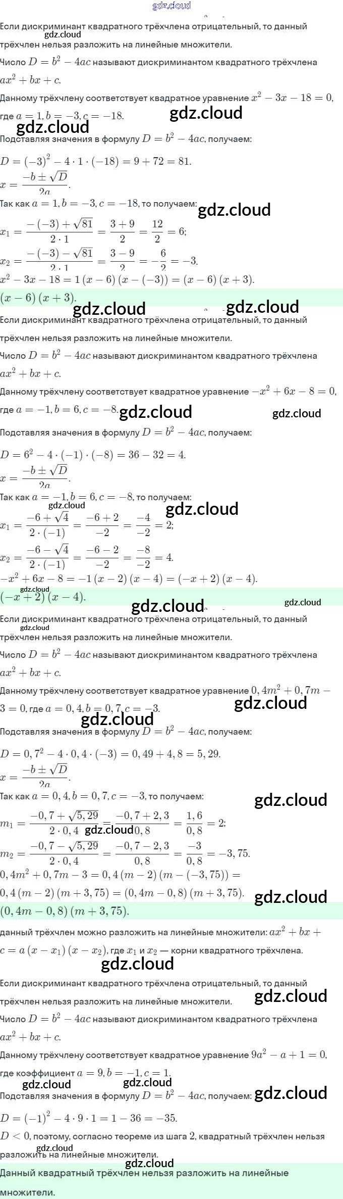 Ответы. §22. Квадратный трёхчлен по Алгебре 8 класс Рабочая тетрадь Мерзляк Алгоритм успеха Часть 1, 2 Вентана-граф